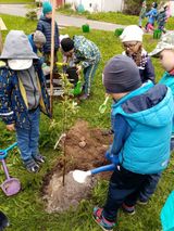 Сегодня в нашем детском саду прошло очень важное событие. На прощание с детским садом выпускники - ребята подготовительной группы "Лучики" положили начало новой традиции "Аллеи выпускников" и с гордостью высадили 5 саженцев молодых яблонь. Ребята дружно и с большим удовольствием помогали носить и подсыпать землю, придерживать саженцы, поливать их. Ребята младшей группы с интересом наблюдали за работой старших.